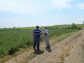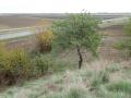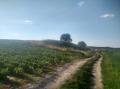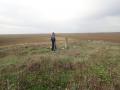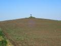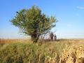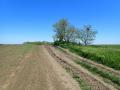 Humka nije mnogo visoka, ipak, ugledali smo je sa 500 m. Jedini mali problem je bio naći prolaz u njive kod zapuštene bivše železničke stanice, a tu smo otkrili da smo mogli 300 m južnije doći do atarskog puta koji vodi baš do njive sa humkom.