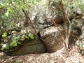 Na sreću, samo malo proređeno rastinje na jednom mestu nas je uvelo pravo do velike stene ispod kojih smo zatekli prvu gomilu rasutog kamena. Dalje je bilo lakše.
