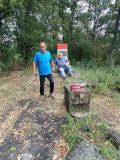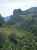 Kamena oznaka kote na vrhu - obrasla šibljem; primetio ju je naš vodič, meštatin, koji je znao gde da je traži.