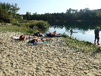 Zatekli smo veliku grupu kupača na divljoj plaži jezera. Plaža je neuređena, ali sama peščana podloga i niska trava ne zahtevaju nikakav poseban tretman da bi sunčanje i kupanje bili sasvim prijatni. Na primedbu da sumnjamo da je ovo najtoplije jezero, jedan od prisutnih kupača smesta je izvadio i potopio termometar u jezero. Snimili smo rezultat: tačno 25 stepeni.