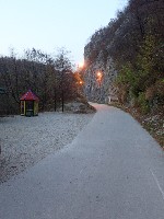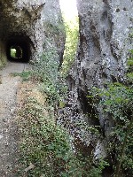 U podnožju istočne stene, uklesan je put, pre bi se reklo uzan prolaz za vozila; prolaz se čini toliko niskim, da autobusi samo što ne dodirnu "plafon" svojim krovom.