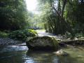 U kanjonu stešnjenom između visokih vrhova, preko krupnog kamenja, u hladovini bujnog zelenila teče žustra rečica.