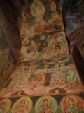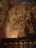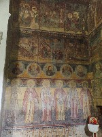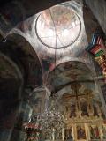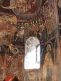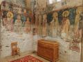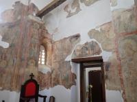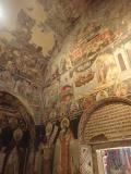 Unutrašnjost crkve pleni svojim prostorom, svetlom i divnim freskama. Fascinantan je i prostor naosa - trema između crkve i zvonika. Stubovi postojeni u više kolonada, završeni lukovima, a na svakoj iole većoj površini ostaci starih freski modrog kolorita. Manastir se nalazi na UNESCO listi svetske kulturne baštine. Freske su izuzetne i tako oslikane da ih, čak, smatraju prethodnicom renesanse poredeći ih sa radovima čuvenog ota. Takođe, primenjena je napredna tehnologija pravljenja boja maime, freske su zadržale svoj sjaj posle čak dva i po veka pod otvorenim nebom (toliko dugo je crkva bila bez krova).