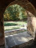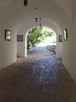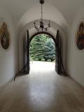 Patina starih fresaka, delimično ogoljeni zidovi i stubovi ogoljeni stvaraju autentični ambijent prohujalih vremena. Pogled na malo jezero u dnu porte rashlađuje letnju atmosferu.