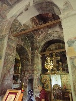 Bio sam fasciniran prostorom naosa - trema između crkve i zvonika. Stubovi postojeni u više kolonada, završeni lukovima, a na svakoj iole većoj površini ostaci starih freski modrog kolorita.