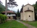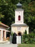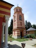Svi objekti se nalaze u dubini manastirskog kompleksa. Do njih sa kapije stiže dugom stazom koja deli travnatu livadu i park. I ovde se crkva nalazi okružena sa sve četiri strane zgradom konaka, što uvek maksimalno otežava kadriranje same crkve. Interesantno da je toranj priljubljen za konak, a ne za crkvu. Dobra stvar pri tome je što je pročelje crkve, odnosno zid pod tremom, bilo slobodan za oslikavanje, tako je prostor oko i nad ulazom u crkvu ispunjen divnim ikonama. Mali detalj: sunčani sat iznad prozora na apsidi.