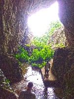 Ispod pećine, u gustoj hladovini, preko kamenih blokova, protiče rečica koja stvara divna jezerca i kaskade, čak i jedan srednji vodopad.