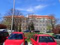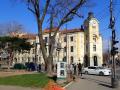 Pogled na fasadu zaklanjaju mnogobrojne žice i dva manja olistala stabla. Šteta.