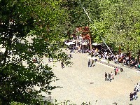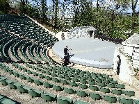Na kraju malog zidanog uspona na brdo, nalazi se veliki amfiteatar sa binom, (obavezni) kafić i skulptura žene na steni.