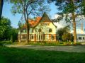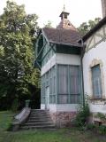 Vrlo šarmantan neveliki objekt, zaobljenih uglova i uvučenog portala sa tremom. Neobično rešenje i pročelja i zadnjeg ulaza.