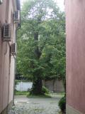 Pogled na fasadu zaklanjaju mnogobrojne žice i dva manja olistala stabla. Šteta.