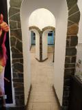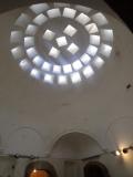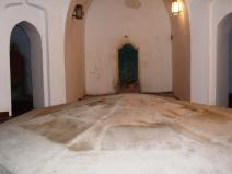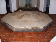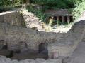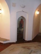 Niz malih prostorija kupatila, lučno nadsvođenih sa uskim prolazima, sa konstrukcijom podnog grejanja izloženom kroz zastakljene delove poda, svetlosti i senke debelih starih kamenih pregrada, ...