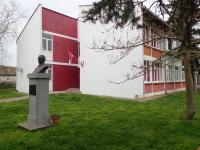 Preko puta, ispred zgrade osnovne škole postavljena je bista Miloša Crnjanskog.