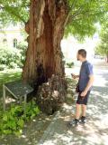 Još uvek su mu grane zelene, iako je samo stablo veoma oštećeno. U sredini, celom visinom, čini velika šupljina.