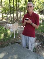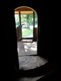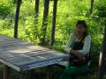 Veliki sto sa klupama u hladovini, divan pogled na brežuljke u dolini i prijatan razgovor sa jedinim monahom, domaćinom.
