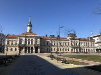 Trg okružuju pravoslavna i katolička crkva i zgrada opštinske uprave smeštena u staru zgradu uprave nastavljenu velikom spratnom zgradom, zadužbinom baronice Eufemije Jović.