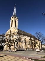 Visoki objekt uz takođe visoki toranj, deluje upečatljivo svojim strogim gotskim linijama, na ovom mestu sasvim dobro ukomponovanim.