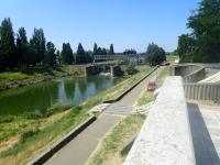 Tokom izgradnje kanala od Bačkog Monoštora do Bačkog Gradišta (1793 - 1802) izgrađena je i prevodnica u Bačkom Gradištu na spoju kanala sa Tisom. Kao i ostale prevodnice na ovom kanalu fundirana je na šipovima od jelovine. Preko betonske mase napravljene od vulkanskog tufa i polomljenih cigala bio je postavljen hrastov pod debljine 8 cm. Cigle zidova prevodnice su povezivane vulkanskim tufom i malterom napravljenim od mršavog belog kreča. Zbog regulacionih radova na Tisi spoj kanala kod Bačkog Gradišta sa Tisom ostao je u mrtvom rukavcu i prevodnica je izgubila funkciju. Zbog toga je 1895. izgrađen novi spojni kanal i nova prevodnica kod Bečeja.