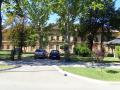Lep zeleni drvored koji ide celom dužinom pročelja zaklanja zgradu, tako da ima malo zgodnih uglova za snimke.