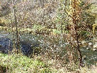 Okružen je stenama i šumom, jedino je strana okrenuta reci potpuno otvorena.