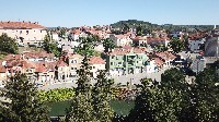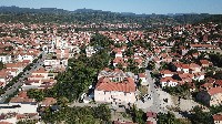 Šaroliki niz spratnih kuća proteže se obalom Svrljiškog Timoka preko puta Spomen parka.