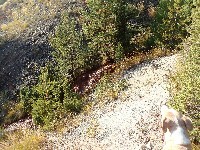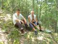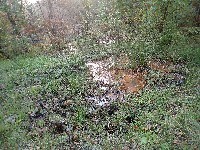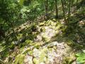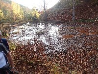 Prvo smo obišli mesto gde su bila rimska rudarska okna, na ivicama klisure plitkog Carinskog potoka. Od starih okana, videli smo samo jedan, skoro zatrpani otvor na (verovatno veštačkoj) zaravni uz potok, čiji deo je sada (ili od ranije) pretvoren u plitko tamno-smeđe blatno jezero. Spuštanje niz obraslu strminu je bilo dosta naporno, tako da smo se vraćali dužim putem, uz potok.