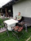 Pop je bio zauzet baveći se pčelinjakom, tako da nismo stigli da porazgovaramo. Porta je živopisna, videli smo družinu negovanih rasnih pasa, jato gusaka, čak i jednog pauna.