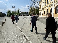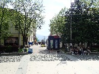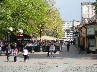 Preseca na pola dugačku i široku ulicu u pešačkoj zoni.