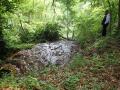 Odmorište je zaraslo u travu, prilaz je zakrčen žbunjem, vodopad se ne vidi od okolne šumice.