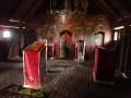 U unutrašnjosti, ispred ikonostasa su postavljena dva originalna kamena stuba, kandelabra - što je ranije bilo uobičajeno mesto za paljenje sveća.