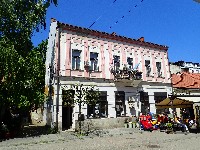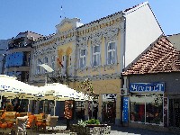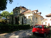 Široko ugaono pročelje sa erkerom i tornjićem čini ovu zgradu veoma prepoznatljivom.