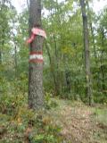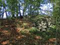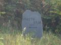Kamena oznaka kote na vrhu - obrasla šibljem; primetio ju je naš vodič, meštatin, koji je znao gde da je traži.