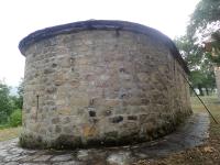 Oko crkve je staro groblje sa velikim kamenim nadgrobnim pločama.