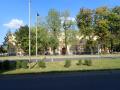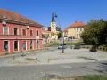 Blok zgrada u centru deluje kao deo mnogo većeg mesta. Pored crkve i spratnih objekata, tu je i niz skladnih, starovremskih kuća, široki trotoar i visoki drvored.