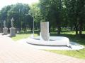 Široki ozelenjeni prostor sa dugom stazom koja vodi do spomenika. Spomenik čine dve betonske "obale" nagnute jedna prema drugoj, svaka sa po četiri bronzane "brazde". Završavaju se "kapijom" koja vodi "u nepoznato".