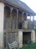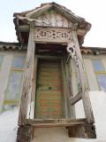 Mali trem na bočnoj strani, zatvoren ukrasnom drvenom ogradom, video sam na svega par kuća i to samo u Sremu. Dekoracija me najviše asocira na ukrašene ambare (koševe, kotobanje) kojih je u Sremu bilo, a ima ih još, dosta.