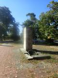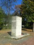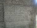 Na kvadar sastavljen od velikih kamenih ploča postavljena je posveta osamdesetorici poginulih meštana.