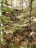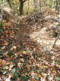 Nalazi se na nižem od dva naspramna vrha istog brda koja razdvaja usek (moguće veštački).