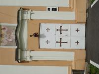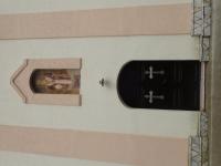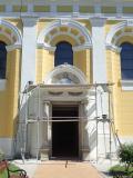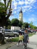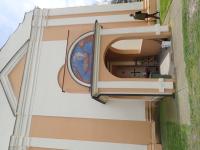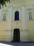 Uzani prolaz između pročelje crkve i parohijskog doma nije nam dao priliku da crkvu snimimo sa "prednje" strane. Ipak, uspeli smo da zabeleĐimo karakteristične ukrase bočnih fasada, kao i lep barokni toranj.