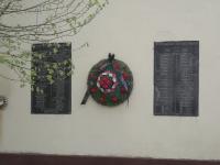 Preko puta crkve, na zgradi škole, postavljene su spomen ploče stradalima u Drugom svetskom ratu.