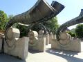 Sedam ogromnih stilizovanih limenih truba duvaju sa trga u Rumi na sve strane Vojvodine. I pronose uspomenu na sedam okupljenih Vojvođanskih brigada.