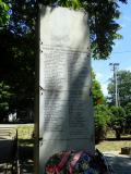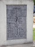 Kamena piramida sa spomen pločama postavljena je pod krošnjama malog parka u centru sela.
