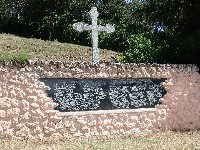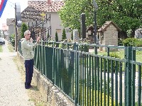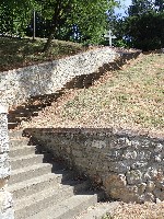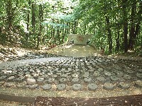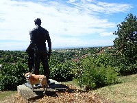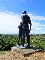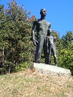 Figura borca koji štiti dete nalazi se na uzvišenju iznad sela. Pristup platou olakšava građeno stepenište.