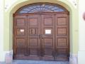 Jake vertikalne linije (pilastri) čine pročelje ionako visokog objekta još vitkijim, a horizontalnu dinamiku stvaraju naglašene stope i završeci (kapiteli) pilastara.