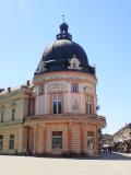 Zgrada je ugaona, nalazi se u samom centru mesta. Ugaoni deo čini kula kružne osnove sa izreženim kubetom, što celoj zgradi daje jedinstven izgled.
