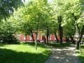 Nalazi se u mirnoj ulici sa puno hladovine i malim trgom.