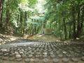 Sa ulaza u kompleks do crkve vodi vijugava staza kroz brižljivo održavano zelenilo.