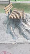 Panj ispod klupe od veštačkog materijala, napravljen je prema kalupu od originalnog žilišta, a sama klupa je od posečenog stabla.