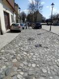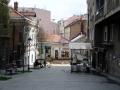 Miran kutak usred centra užurbanog grada. Kaldrmisani pločnik okružuju starinske zgrade od kojih većina ima istorijsku vrednost. Jedno mesto je prazno - nedostaje zgrada bombardovane biblioteke.