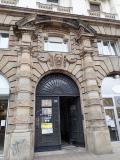 Uska a visoka, u izraženo secesijskom stilu, izdvaja se u nizu okolnih zgrada.